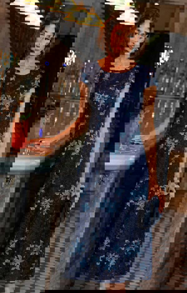 Elegant, refined and perfect for special occasions, the Charlotte Lace Dress in Midnight Blue by Alie Street London is a beautiful choice for parties and evening events. Featuring embroidered floral lace in contrasting navy and steel blue tones, this sophisticated midi dress blends delicate detailing with a flattering silhouette.