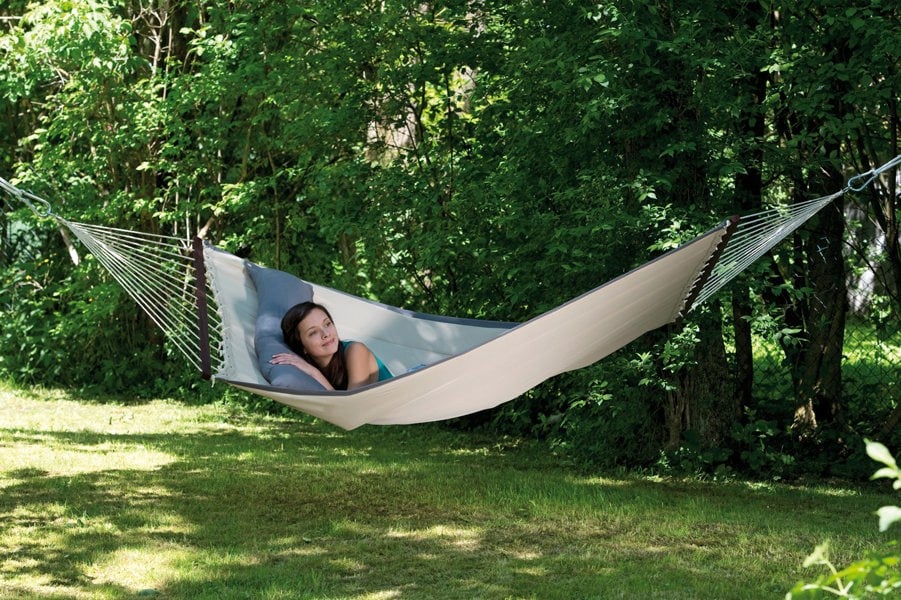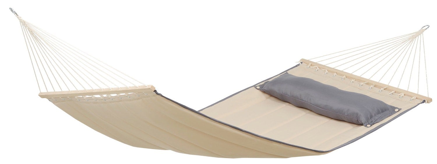 From Amazonas, the American Dream Set pairs the Sand Hammock with the Apollo Stand for a relaxed, open hammock set-up designed for easy access. Spreader bars keep the hammock held open, making it simpler to get in and out, while the softly padded design is finished with grey trim for a considered look.