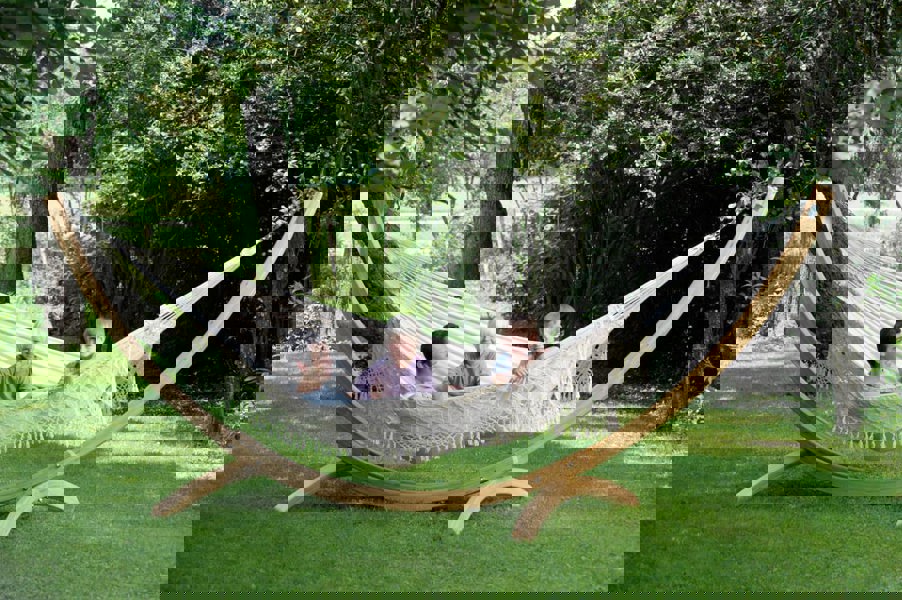 Designed for a refined garden or terrace set-up, the Amazonas Arcus Hammock Stand pairs a warm, oiled larch finish with stainless steel fittings for a clean, considered look. Made from sturdy FSC-certified larch, it has been optimised in size to suit current hammock models, with an adjustable total length to help you achieve the right fit.