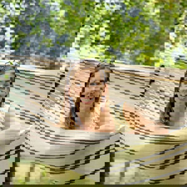 The Barbados Cappuccino Hammock is the perfect double hammock and one of our best sellers. The 400 g/m2 thick material is luxurious and very strong, holding up to 200 kg, and with a large enough lying surface for two adults.