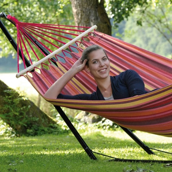 From Amazonas, the Beach Hammock & Stand Set is a colourful, ready-to-relax pairing designed for easy lounging outdoors. With a vibrant hammock and a coordinating stand, it creates a comfortable spot to unwind in the garden, with a frame that can be packed away when the season ends.