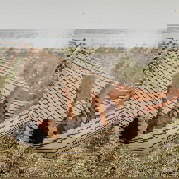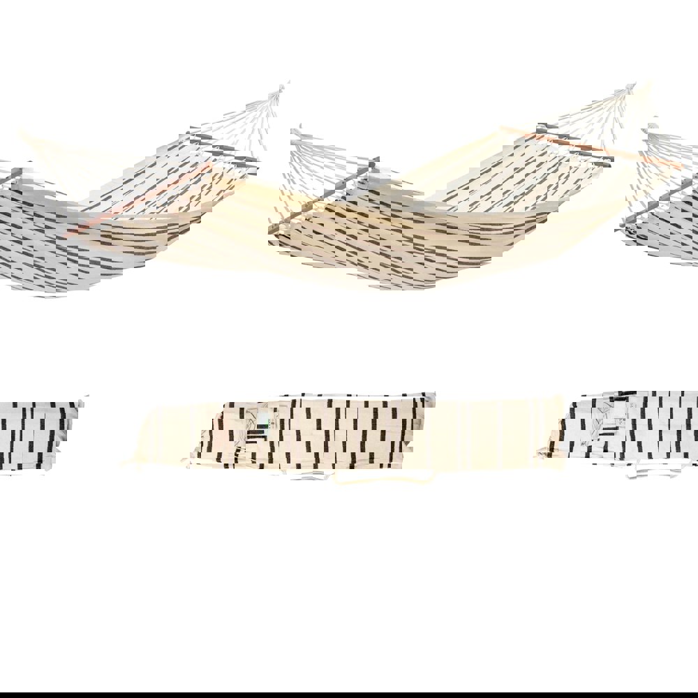 Spend quality time snuggled up in the gorgeous Brasilia Cappuccino Hammock, which can be strung up between trees or from one of our compatible hammock stands. It has extra strong fabrics, braided cords and hardwood spreader bars to provide supreme strength and perfect comfort. The Cappuccino Hammock is durable, can be left outside and is supplied with its own matching bag for storage and portability.