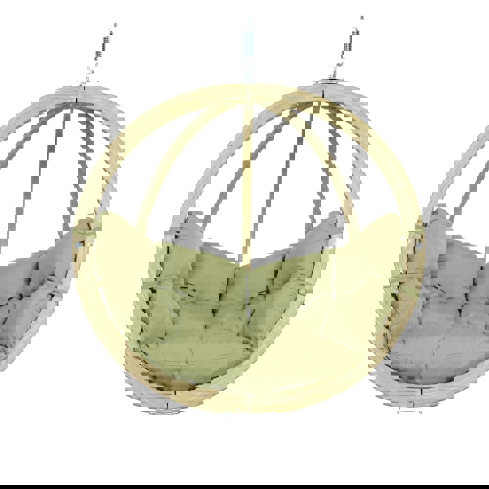 The ideal place to relax in style and comfort, the Single Globo Hanging Chair is made from multiple layers of weatherproof spruce wood and galvanized metal fixings. It has been designed to guarantee maximum stability and safety. The Cushion is bespoke and designed to fit around the chair and is fixed securely. The weatherproof cover is made from 100% polyester.