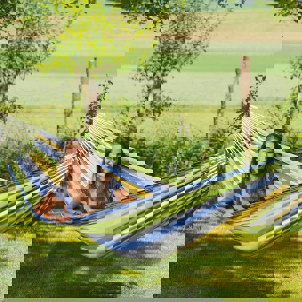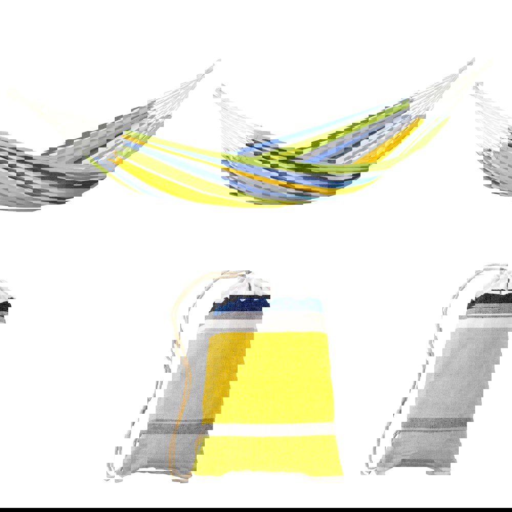 The Tahiti Kolibri Hammock is made from soft, strong cotton fabric in lovely, colourful stripes. It has extra long strong cords for great stability and extra luxury and all at a fabulously low price.