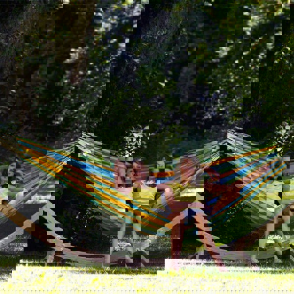 Designed to suit a range of hammock lengths, the stand adjusts easily to accommodate compatible hammocks from 340 to 420 cm (134″–165″). With a maximum load capacity of 200 kg (441 lbs), it offers reassuring strength for everyday use in the garden or on the patio.