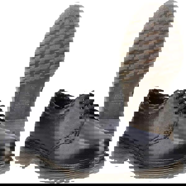 Lace up black leather shoes in corporate styling. A cushioning sole provides all day comfort.