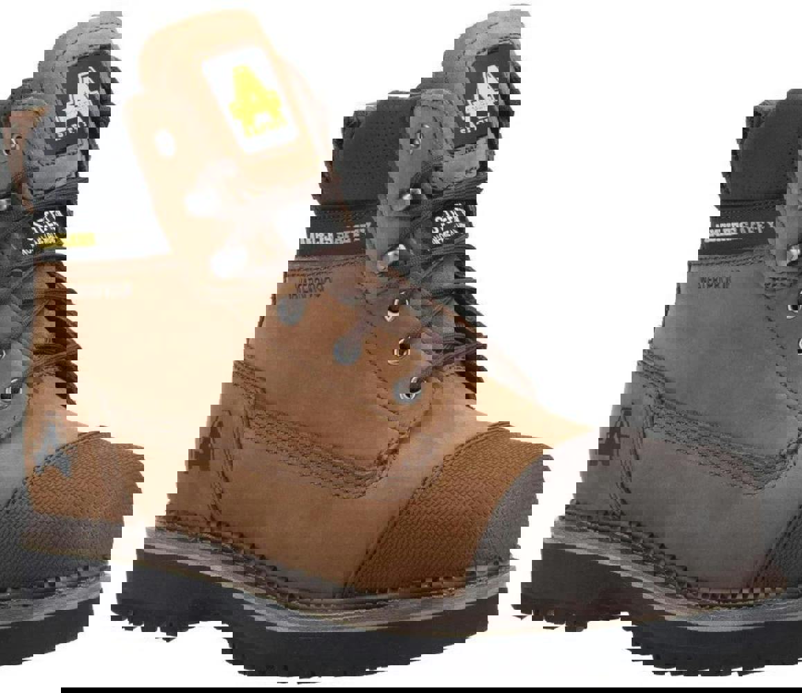 Traditional 6" GOODYEAR WELTED lace up safety boot with durable external rubber scuff cap, water resistant full grain leather upper & internal waterproof membrane, steel toe, flexible composite midsole and hardwearing PU/Rubber outsole