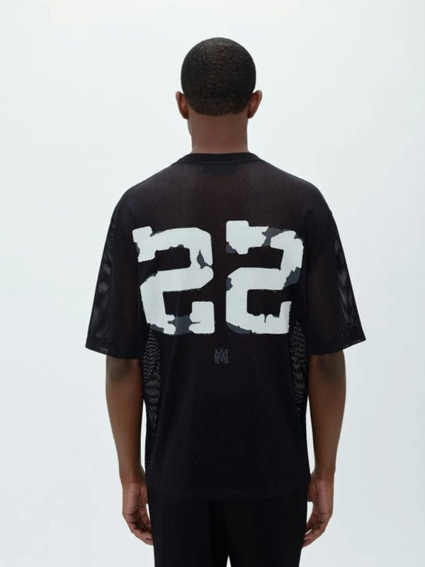 Elevate casual wardrobes with the AMIRI 22 Mesh Tee, showcasing a striking white and black design that boldly features the iconic AMIRI logo.