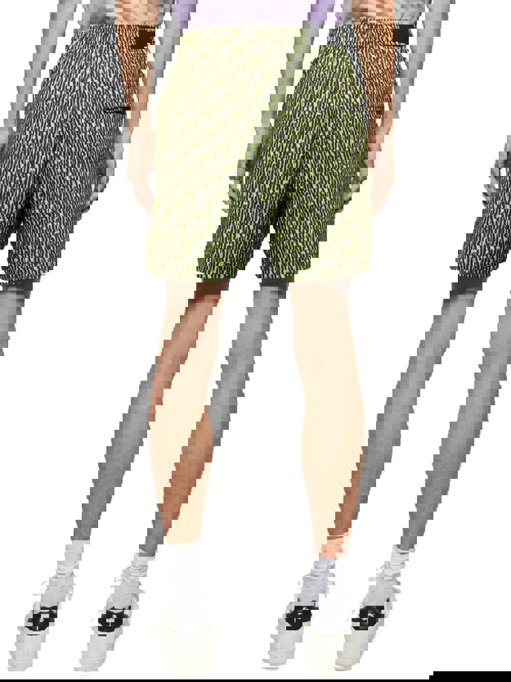All over AMIRI logo swimming trunks in a lime green and black colour way. Elasticated drawstring waist, zipped pockets and classic AMIRI patch on rear waist.