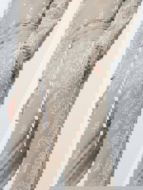 French Terry sweatpants in a beige tone. Graphic pattern printed throughout. · Bungee-style drawstring at waistband and cuffs · Three-pocket styling · Mock-fly · AMIRI leather logo patch at back · Logo-engraved silver-tone hardware Supplier colour: Crockery