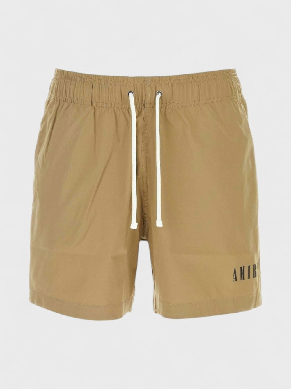 Elevate your beachwear with the Amiri Core Logo Swim Trunks in tan. Designed with a sleek silhouette and featuring the iconic Amiri logo, these trunks combine style and comfort effortlessly. Lightweight and quick-drying, they ensure you stay comfortable both in and out of the water. Perfect for beach days or poolside lounging, these swim trunks bring a touch of luxury to your seasonal wardrobe.