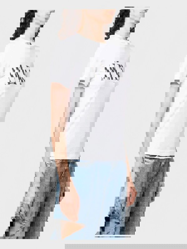 logo-print cotton T-shirt from AMIRI featuring white, black, black, black, cotton, logo print at the chest, round neck, ribbed band collar, short sleeves and straight hem.