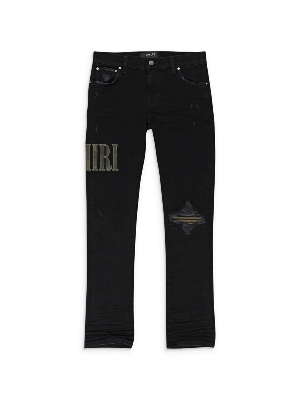 Amiri Kids' jeans in black denim with camo core logo appliqué to leg.