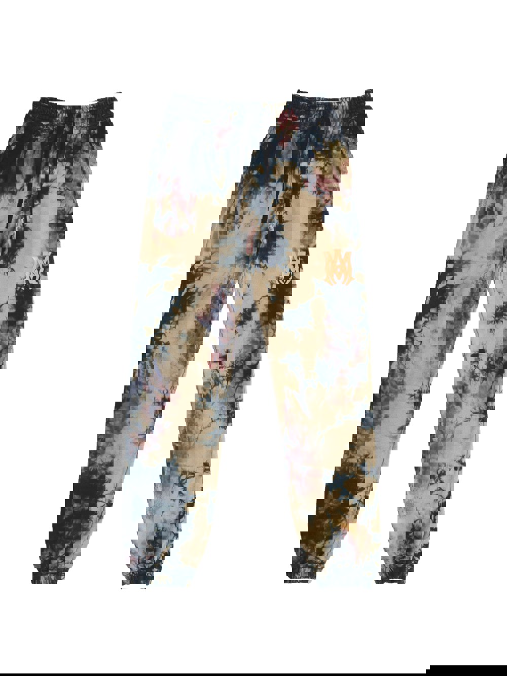 These AMIRI Kids Tie Dye Camo Sweatpants combine a distinctive camo pattern with vibrant tie-dye effects, creating a unique multi-colored look. Crafted for comfort and style, they feature a bold orange logo that adds a striking contrast. Ideal for active kids, these sweatpants offer both durability and a fashionable edge, making them a versatile addition to any young wardrobe.