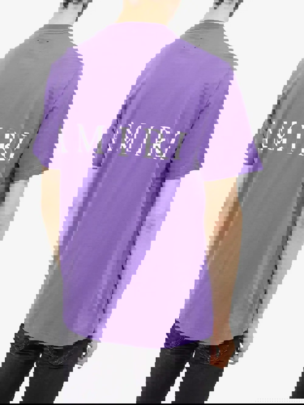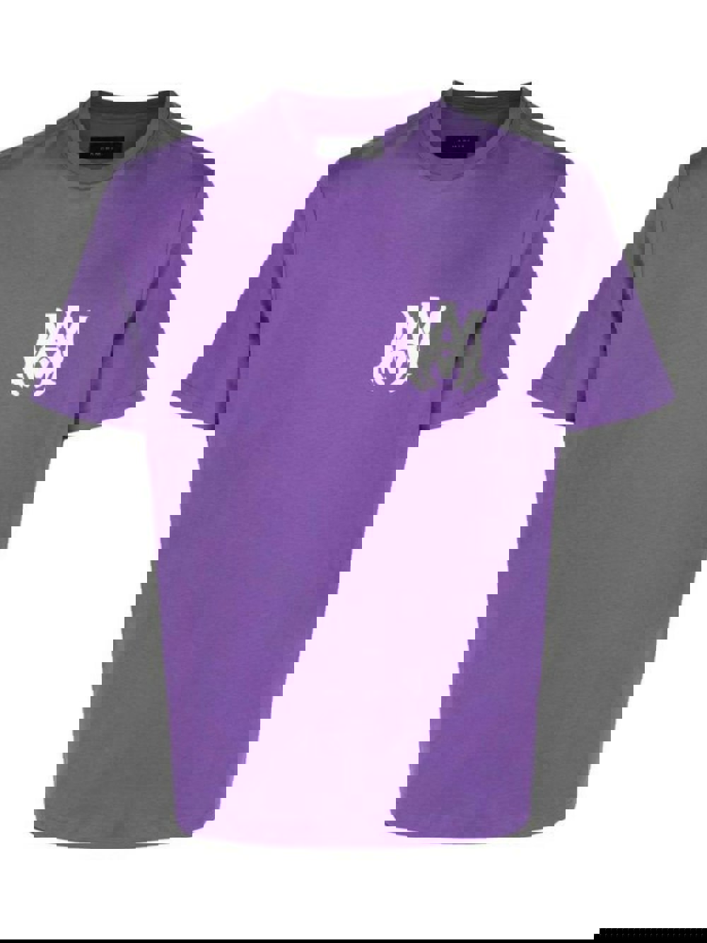 Purple round neck t-shirt from Amiri featuring their MA icon to the front chest and AMIRI logo across the back.