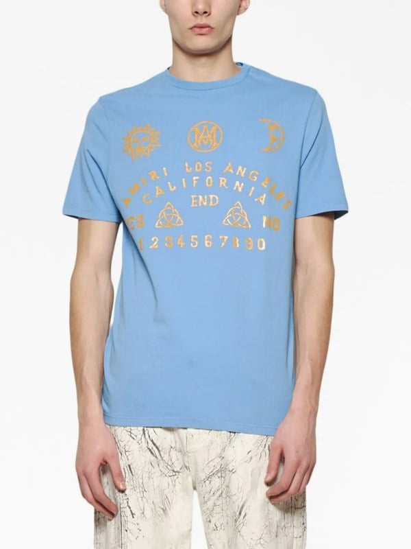 Unlock the mysteries of the spirit world with this Amiri Ouija Board T-Shirt in Carolina Blue.