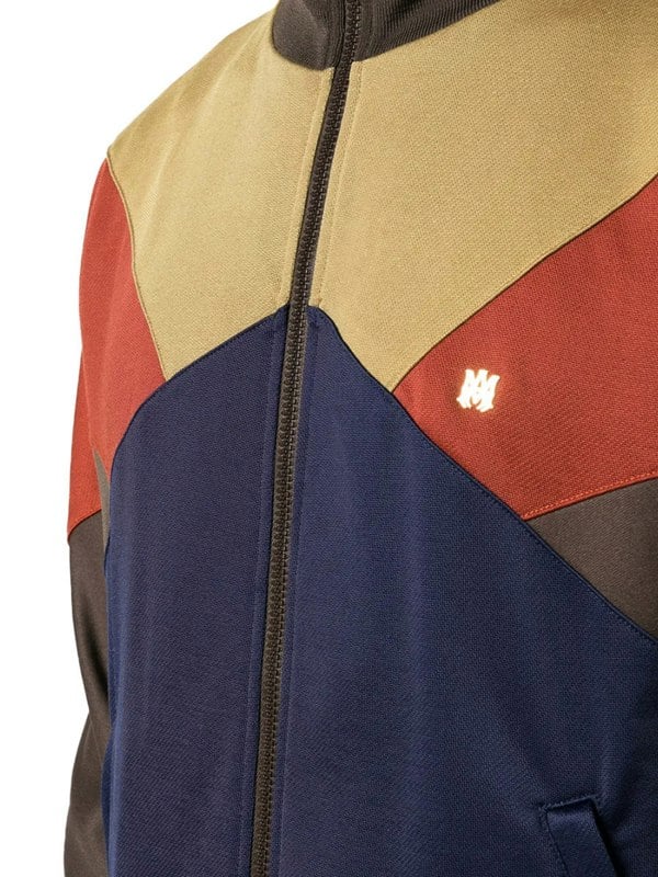 Classic retro jacket from AMIRI with metallic gold coloured MA logo to the chest paying homage to the legendary Mike Amiri with colour block design, back in fashion in 2025.