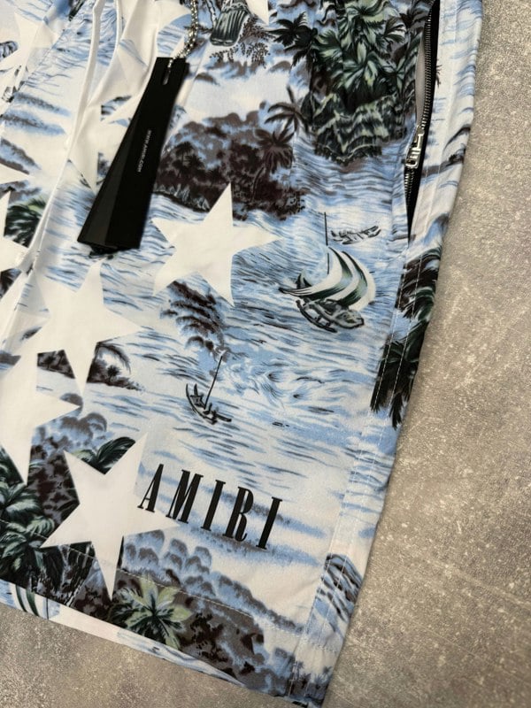 AMIRI's Bermuda swim shorts are printed with white stars - taken from its collaboration with Chemist - atop a tropical backdrop. They're cut for a relaxed fit from silk-twill and have a comfortable elasticated drawstring waistband. Wear yours with the matching shirt.