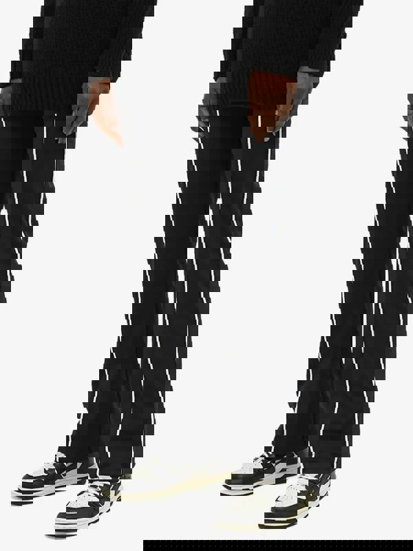 Relaxed-fit technical jersey track pants in black. Piping in white throughout.