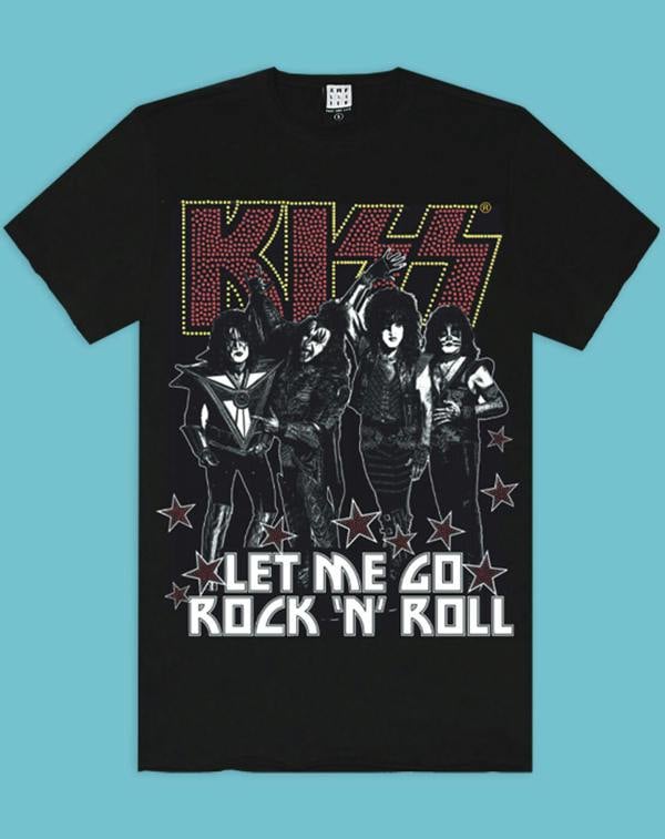 You never knew you needed a t-shirt like this until now! Show everyone your love for rock music with this awesome Amplified Kiss diamante let me go rock 'n' roll t-shirt