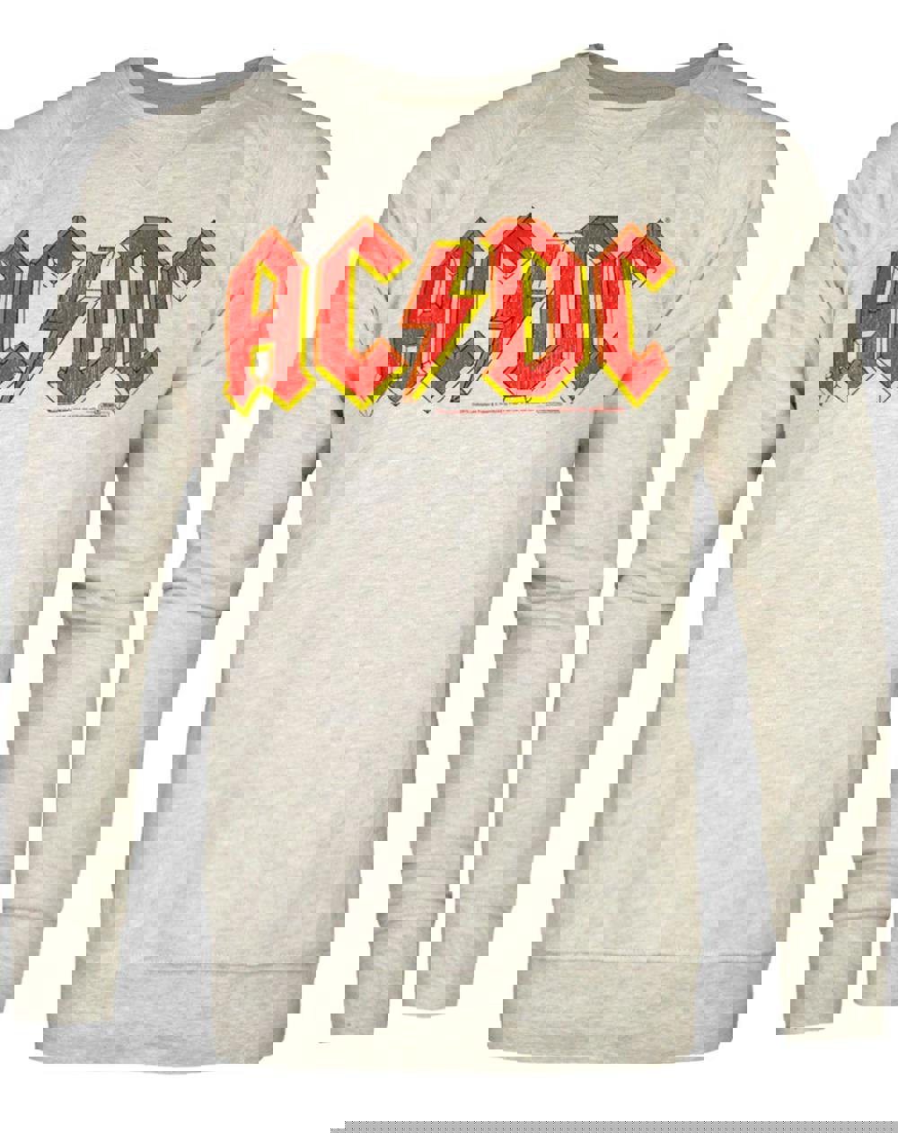 Founded on a cool oat coloured sweater, this classic AC/DC logo sits in striking red and yellow, mirroring the traditional AC/DC logo colours