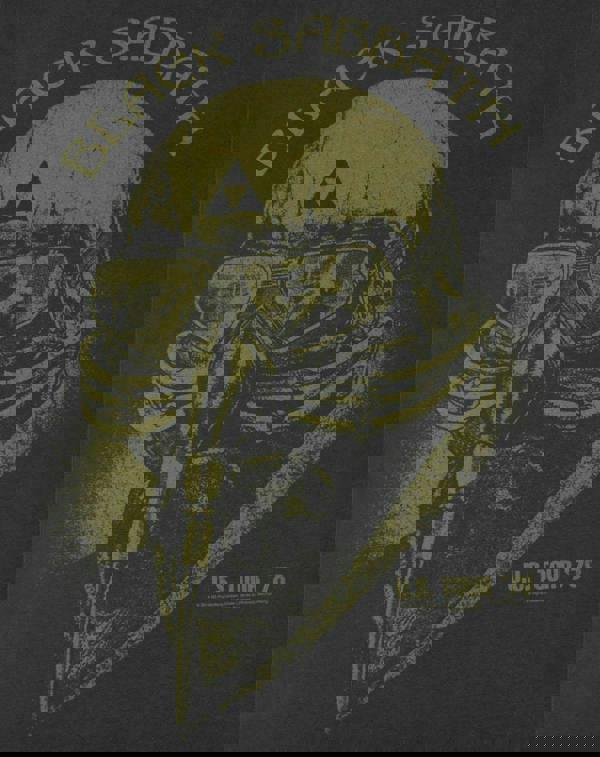 The design across the front of this t-shirt sees the iconic artwork for the Black Sabbath US Tour in 78