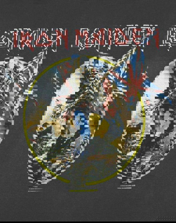 Focused around Iron Maiden's iconic single The Trooper, this crew neck t-shirt mixes raw edge hem, sleeves and neck, distressed effect print, and unique reversed seaming to give an overall vintage inspired classic rock n roll look
