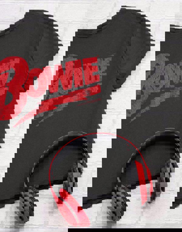 Add some edge to your style with this Amplified David Bowie Logo Womens Cropped T-Shirt
