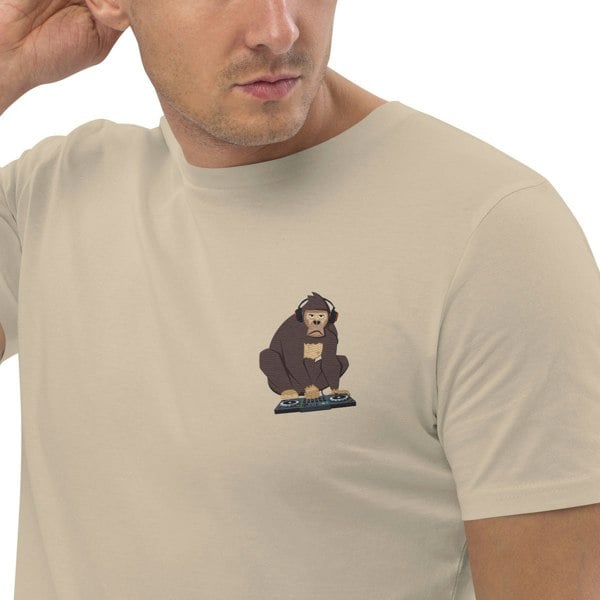 The DJ Monkey Organic Cotton Embroidered T-Shirt was designed in-house and is manufactured-to-order on demand in our best effort to overcome the two biggest contributors to waste in fashion: overproduction and guesswork. High-quality, medium fit and eco-consciously made, this ANCHOR & CREW t-shirt features: