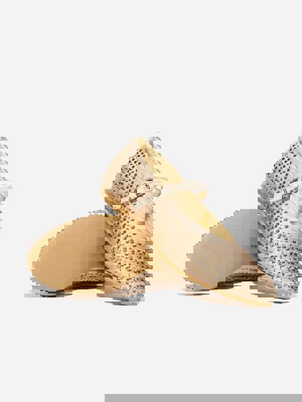 Andanines girls diamante shoes in gold, crafted in Spain for the AW2025 season. Diamante accents add a sparkling finish, paired with a rich gold hue. A suitable choice for parties and celebrations.