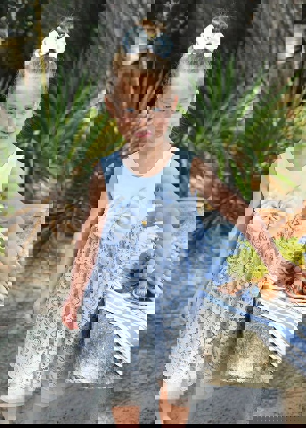 Introducing the Girls Corella Lace Dress in Blue from Angels Face, an essential high-end piece for SS2025. Exquisitely tailored for elegance and comfort: