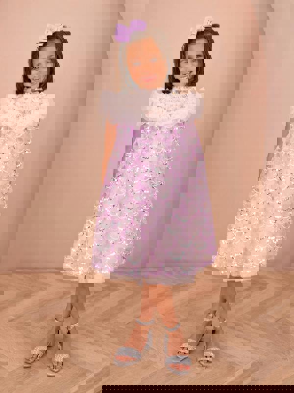 The Angels Face Girls Dominique Sequin Dress comes in regal purple with an all-over sequin finish. This dress brings a high-shine look suited to festive occasions and party wear, with a standout surface texture created by the sequinned design.