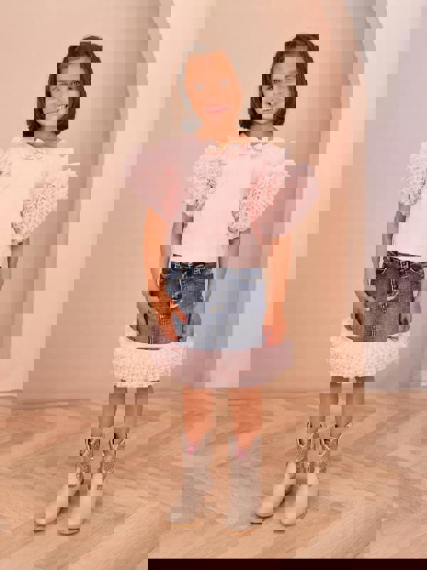 The Angels Face Girls Lessi top arrives in pink for SS2026. Puff sleeves in tulle bring a voluminous finish, adding a standout detail to the silhouette. This piece is presented as a top for girls, with a focus on comfort for all-day wear.
