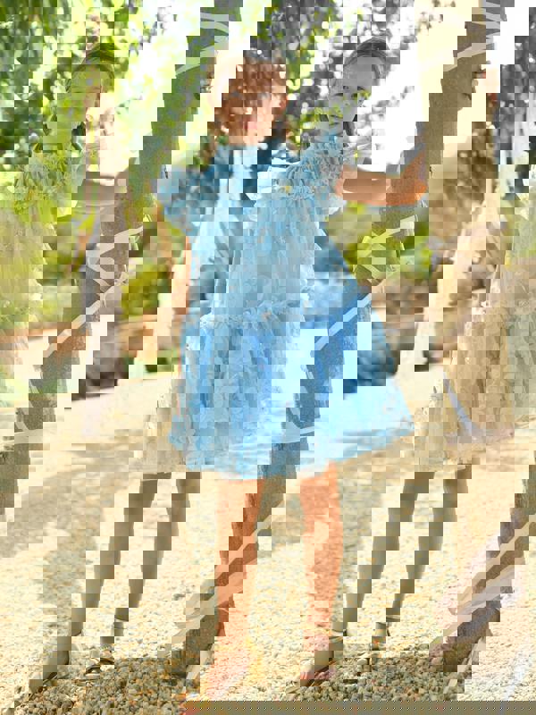 The Angels Face Marietta dress comes in a rich blue shade with delicate embroidery across soft tulle. 3D bud motifs add texture and detail, creating a distinctive look for special occasions. The tulle construction brings a light, airy finish while keeping the design focused on the embroidered surface pattern.