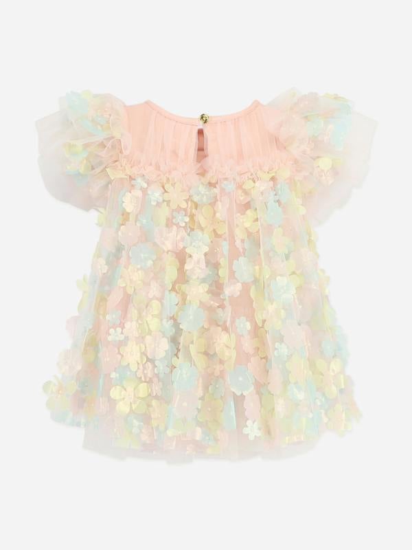 Angels Face Marlowe dress in pink for girls, created for the Spring/Summer 2026 season. Multi-flower appliqués add 3D floral detailing across the design, paired with soft tulle layers for a light, airy silhouette. The pink colourway keeps the look bright and playful, while the finish reflects the Angels Face designer label.