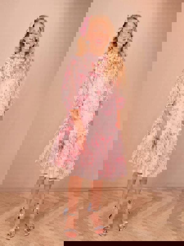 This Angels Face girls Myrtisa dress comes in pink with a posy floral print and a tulle finish. A spring/summer 2026 piece, it brings a light, occasion-ready look to her wardrobe for parties and gatherings.