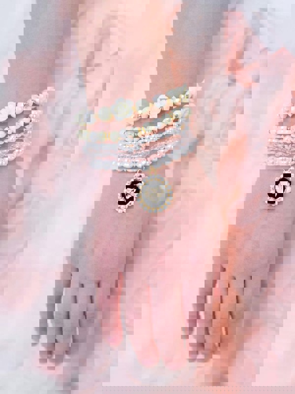 The Angel’s Face Girls Pearl and Pendant Bracelet Set in White brings a polished finishing touch to everyday outfits and special occasions. This five-pack bracelet set is presented in black and white, offering a coordinated mix that can be worn together or styled separately.