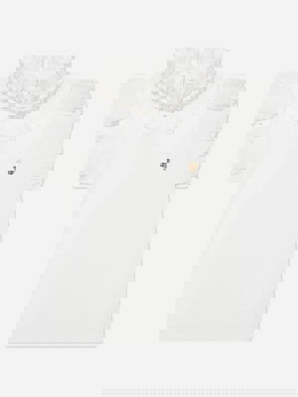 Angels Face Pearlee top in white from the AW2024 collection. This girls’ style has a pearl collar with hand-embellished pearl detailing and a pleated finish for added texture.