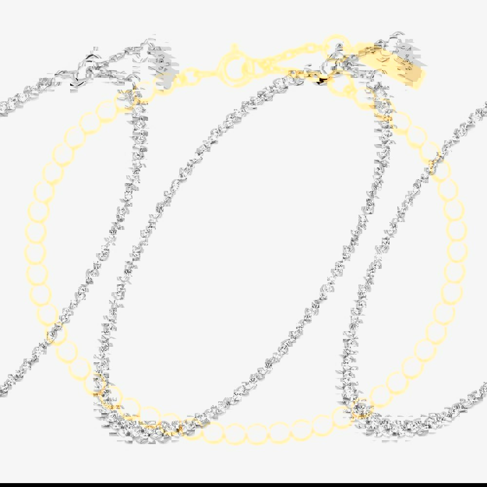 Sleek and sophisticated, the Chic Creator Tennis Bracelet features a continuous line of clear cubic zirconia set in 14ct gold-plated sterling silver. Whether worn on its own for a refined statement or stacked for a layered, modern look, this piece brings effortless sparkle to any ensemble. A timeless essential with a contemporary edge, it transitions seamlessly from day to night.