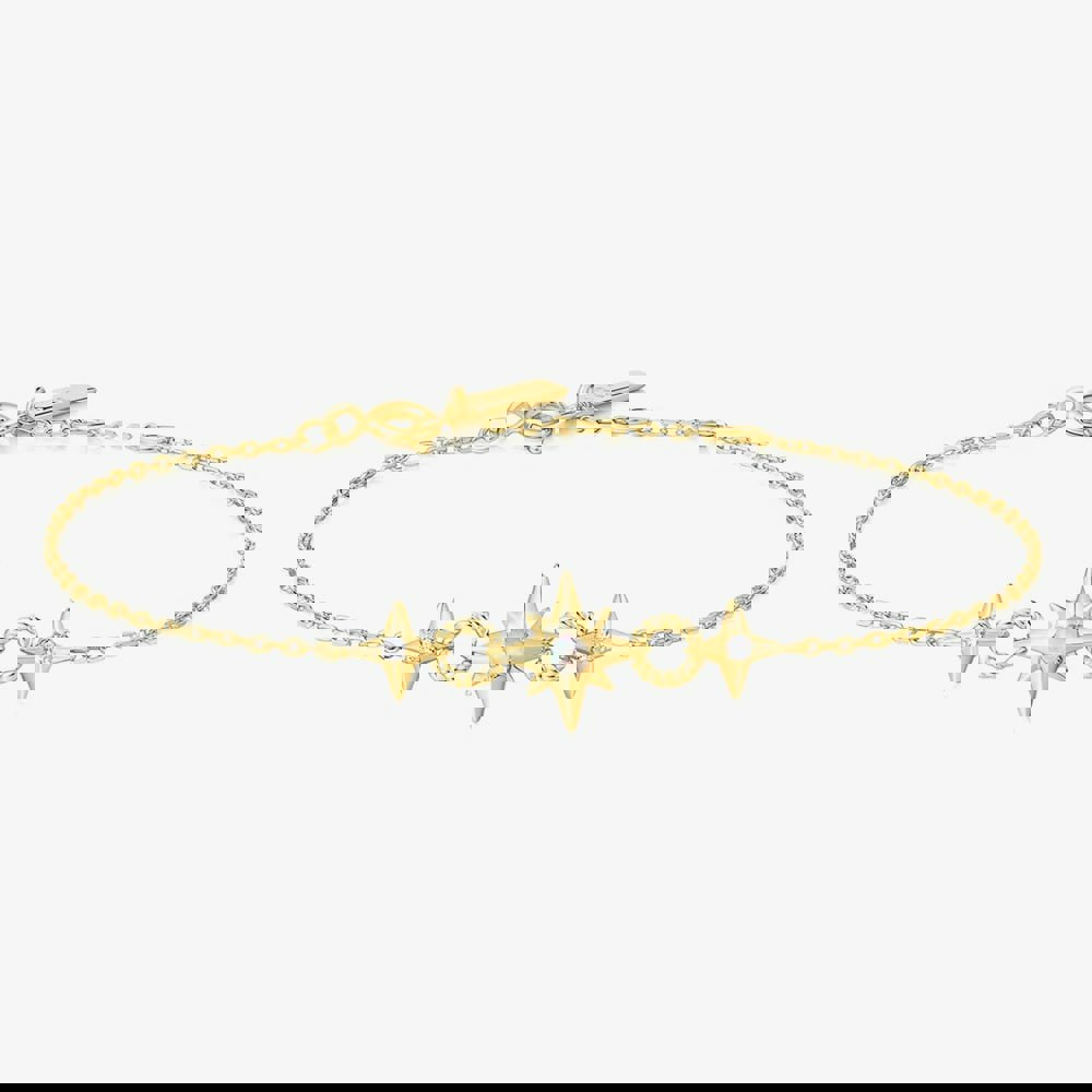 Inspired by nature’s untamed beauty, the Chill Voyager bracelet adds a touch of carefree elegance to any look. Featuring a radiant Kyoto opal set in an eight-pointed star, flanked by two smaller stars and connected by delicate links, it’s perfect for layering or wearing solo. Crafted from 925 sterling silver with 14ct gold plating and accented with Kyoto opal and cubic zirconia, this piece brings effortless charm and a hint of celestial sparkle.