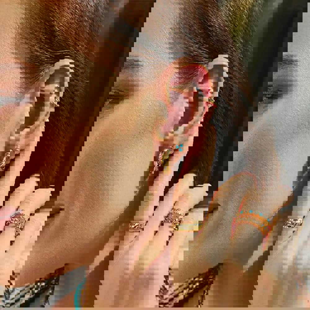 Add a bold yet elegant touch to your look with these textured huggie hoop earrings, crafted from 14ct gold-plated sterling silver. The intricate textured design creates a modern, sophisticated feel, making these hoops perfect for both everyday wear and special occasions.