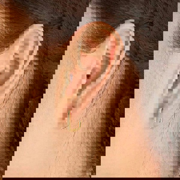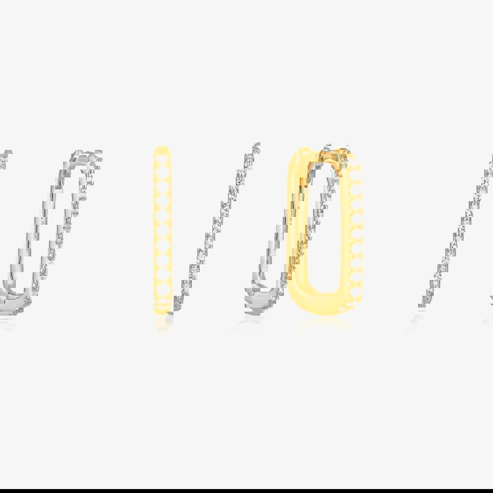 From the Glam Rock Collection, these bold oval-shaped hoops are crafted from 14ct gold-plated sterling silver and set with shimmering white cubic zirconia stones. Combining edgy glamour with refined sparkle, they make a striking statement, perfect for elevating both everyday and evening looks.