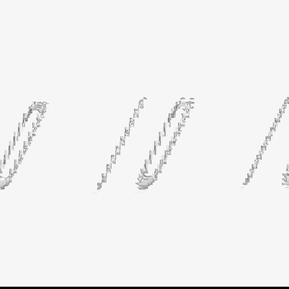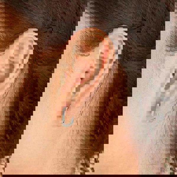 From the Glam Rock Collection, these striking oval-shaped hoops are crafted from sterling silver and adorned with sparkling white cubic zirconia stones. Blending edgy style with elegant sparkle, they make a bold statement, perfect for adding a touch of glam to any outfit.