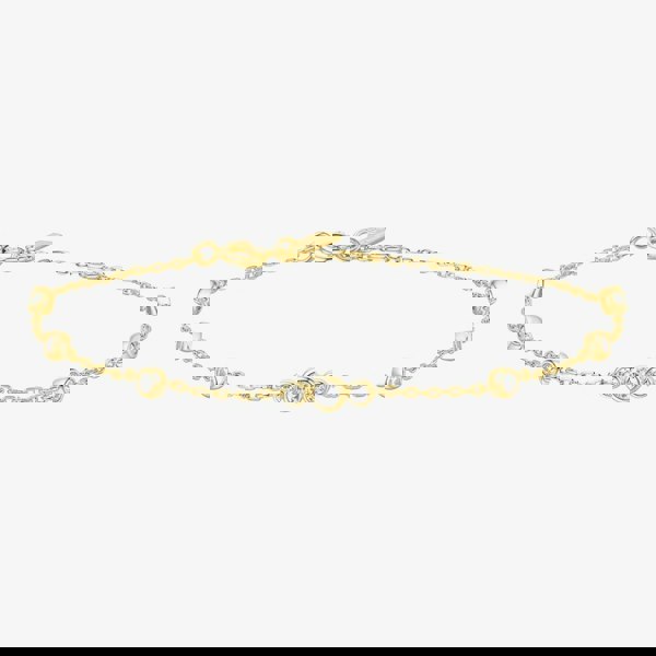 Delicate and graceful, the Miss Dainty Cubic Zirconia Station Bracelet is made for the woman who embraces elegance with a playful spirit. Crafted from 925 sterling silver with 14ct gold plating, it features multiple bezel-set cubic zirconia that add a subtle sparkle to the wrist. Its versatile design makes it perfect for wearing solo or layered with other pieces.