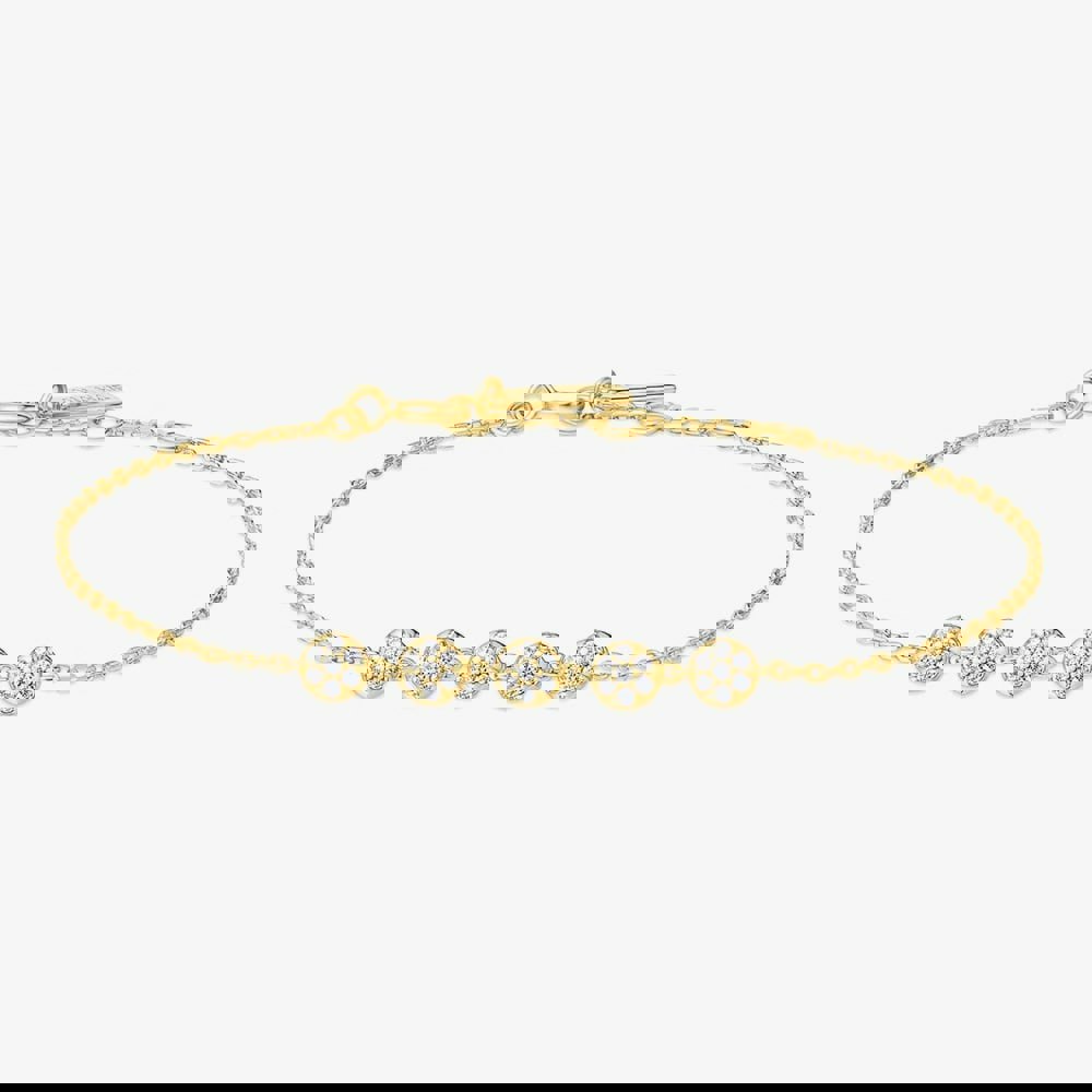 The Miss Dainty Pavé Bead Bracelet combines elegance with a playful twist. Crafted from sterling silver with 14ct gold plating, it features flat beads set with pavé cubic zirconia, offering subtle sparkle. Perfect for wearing alone or stacking, it adds a refined touch to any outfit, from every day to special occasions.