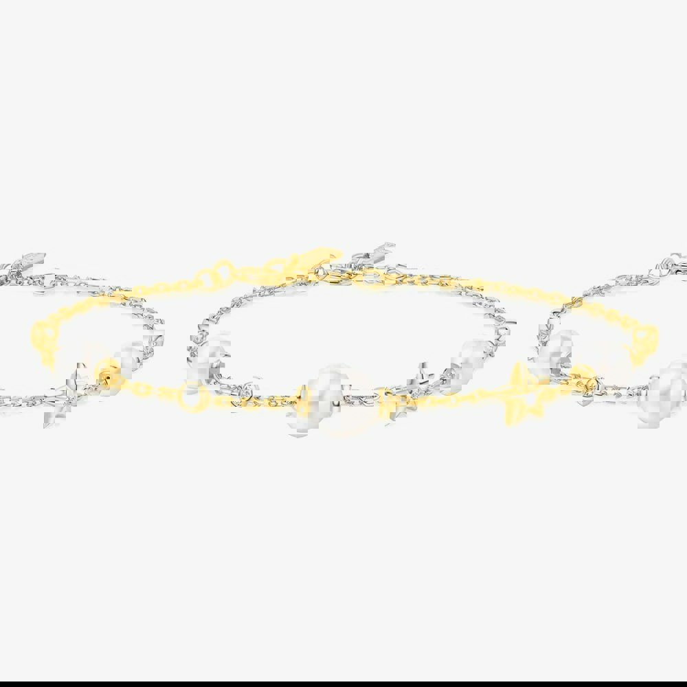 Romantic and refined, the Miss Dainty Pearl & Star Station Bracelet is crafted for the woman who embraces elegance with a playful spirit. Made from sterling silver with 14ct gold plating, it features a graceful mix of shell pearls and cubic zirconia, highlighted by a charming star-shaped accent.