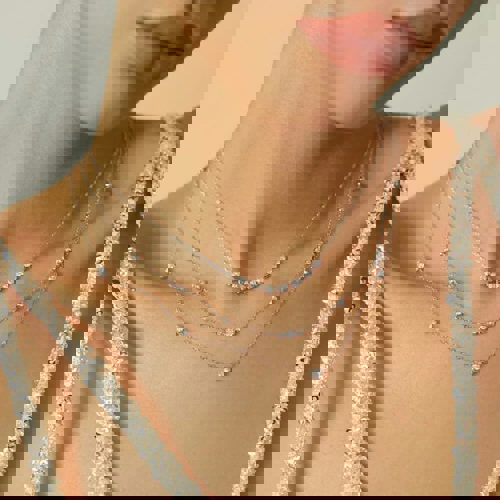 Designed for the woman who appreciates elegance with a playful touch, Miss Dainty is crafted from sterling silver and features multiple flat beads encrusted with pave cubic zirconia. With its delicate details and subtle sophistication, this necklace can be worn alone or layered for a striking look, ideal for both everyday wear and special occasions.