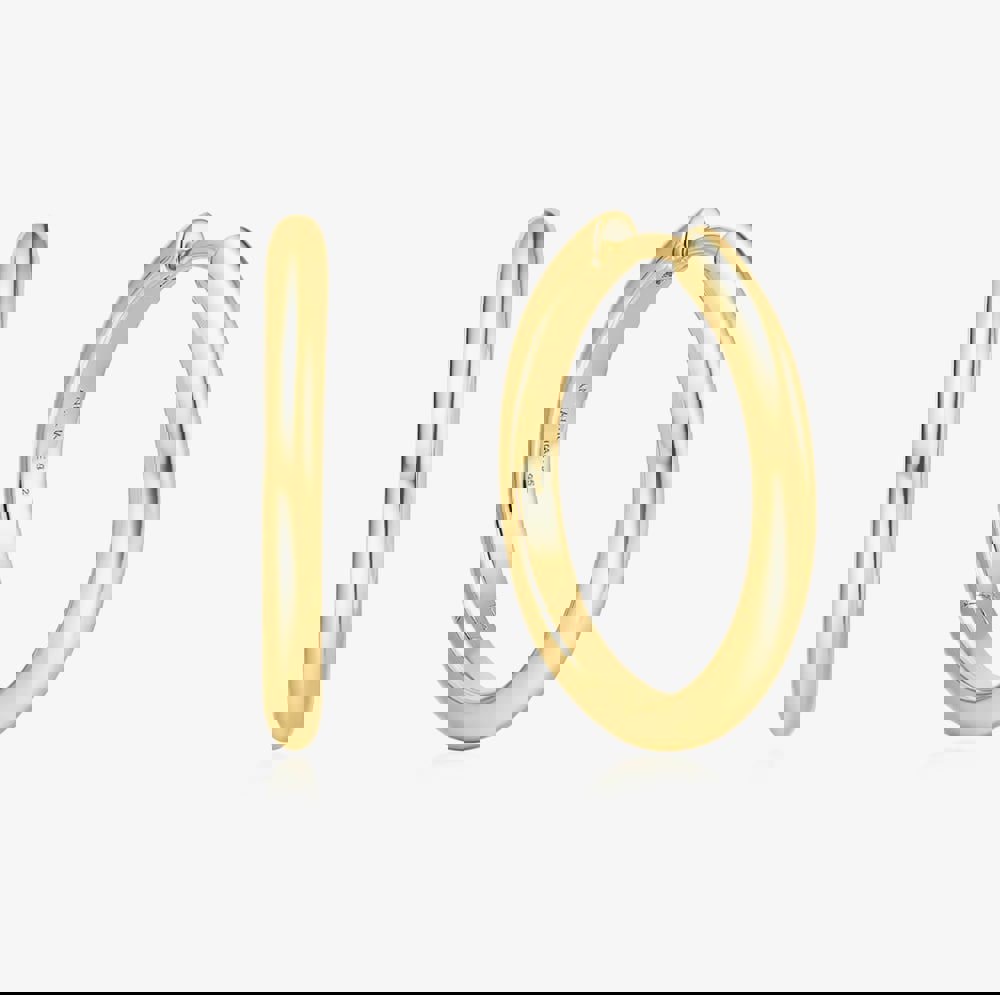 Classic with a modern edge, these medium-sized hoop earrings are crafted from sterling silver and plated in 14ct gold for a warm, polished finish. Their timeless silhouette makes them a versatile staple, perfect for everyday wear or dressing up for an evening out. Lightweight and effortlessly stylish, they add just the right touch of elegance to any look.