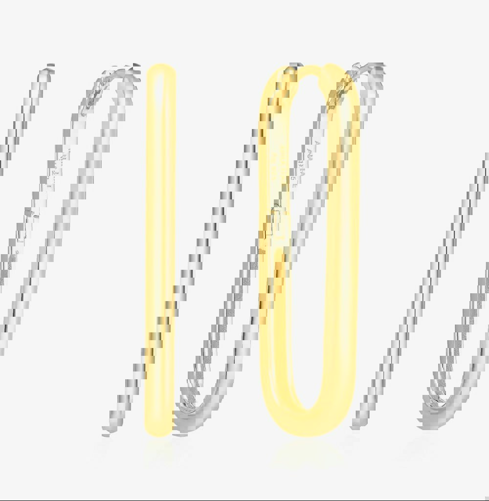 Sleek and refined, the Vogue Maven oversized U hoop earrings are perfect for both casual moments and your daily commute. Crafted from 925 sterling silver with 14ct gold plating, these earrings offer a stylish and versatile addition to any outfit. Their bold yet minimalist design adds a modern touch, making them a timeless accessory for any occasion.