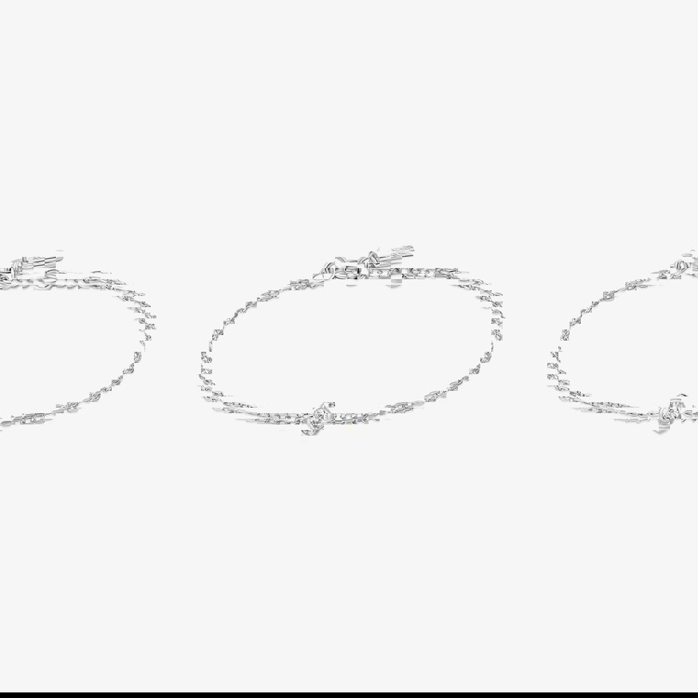 Elegant and understated, this sterling silver bracelet from the Vogue Maven collection features a delicate chain accented with a single bezel-set white cubic zirconia stone. Its clean, minimalist design adds just the right touch of sparkle, ideal for everyday wear or stacking with other pieces for a layered look.